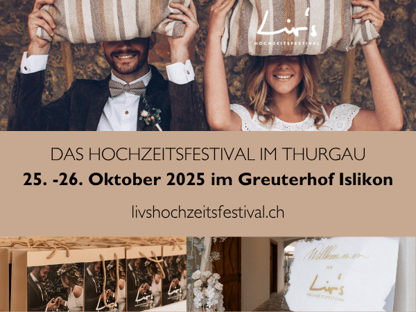 Das Liv’s Hochzeitsfestival schreibt ein Stück eurer Geschichte, denn hier im lieblichen Thurgau könnt ihr in eine Hochzeitswelt in einem besonderen Rahmen eintauchen. Vom 25-26. Oktober 2025 inspirieren euch rund 45 regionale, etablierte und kreative Hochzeitsdienstleister in der Planung für euren Hochzeitstag in einem tollen Ambiente! Das Festival bietet für 2 Tage die Highlights der Hochzeitswelt mit einer traumhaften Modeshow, Live Acts, kulinarischen Leckereien, einen Besucherwettbewerb und vielen kleinen weiteren Überraschungen! Geniesst die besondere Stimmung und den Hochzeitszauber!